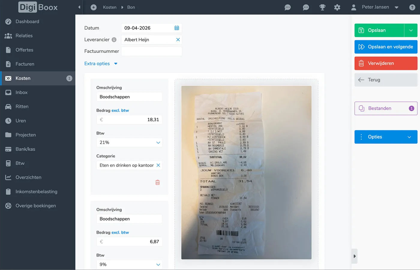 Controleer de gegevens en boek direct in je administratie.