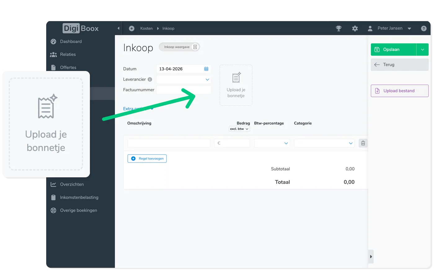 Of je nu onderweg bent of achter je laptop zit: je bonnetjes en facturen staan binnen seconden in DigiBoox.